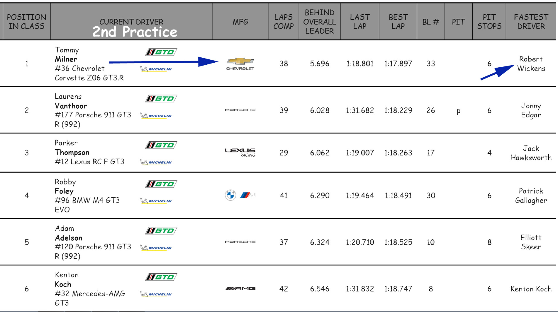 On the IMSA side, using the same track Both Z06 GT3.R drivers took first place in practice