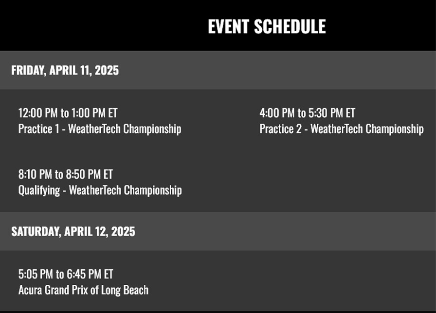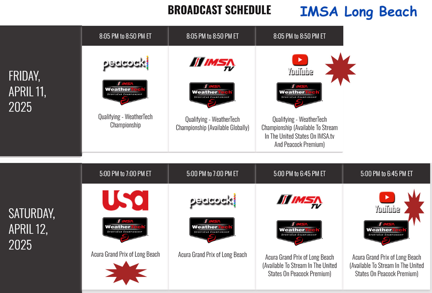 Starting on the 11th this month both IMSA and GT American will be doing races at Long Beach, Ca