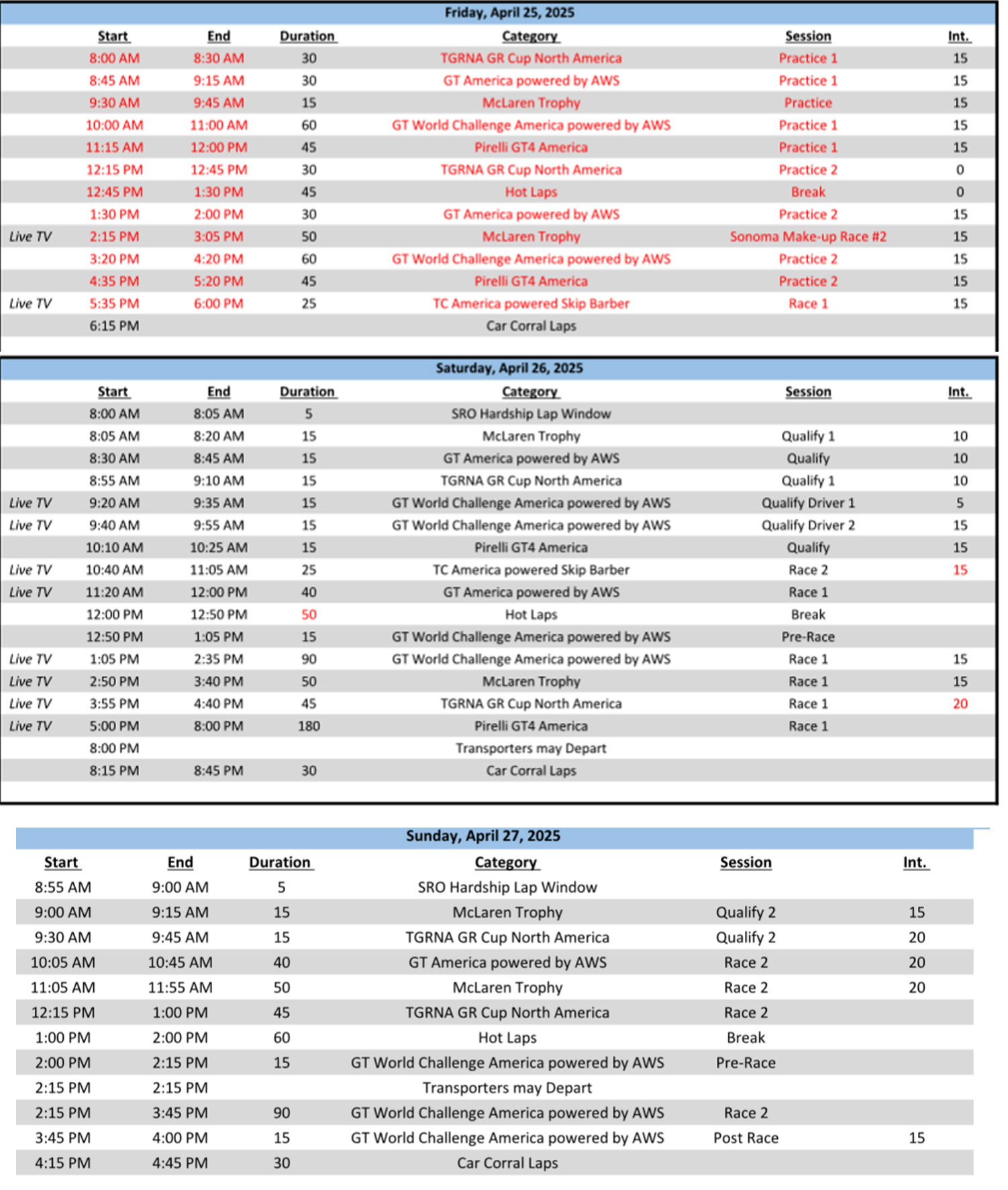 GT America competitors will have the opportunity to test on Thursday, with two practice sessions set for Friday, followed by qualifying on Saturday morning. Race 1 gets underway Saturday at 11:20 a.m. CST, with Race 2 on tap for Sunday at 10:05 a.m. CST.