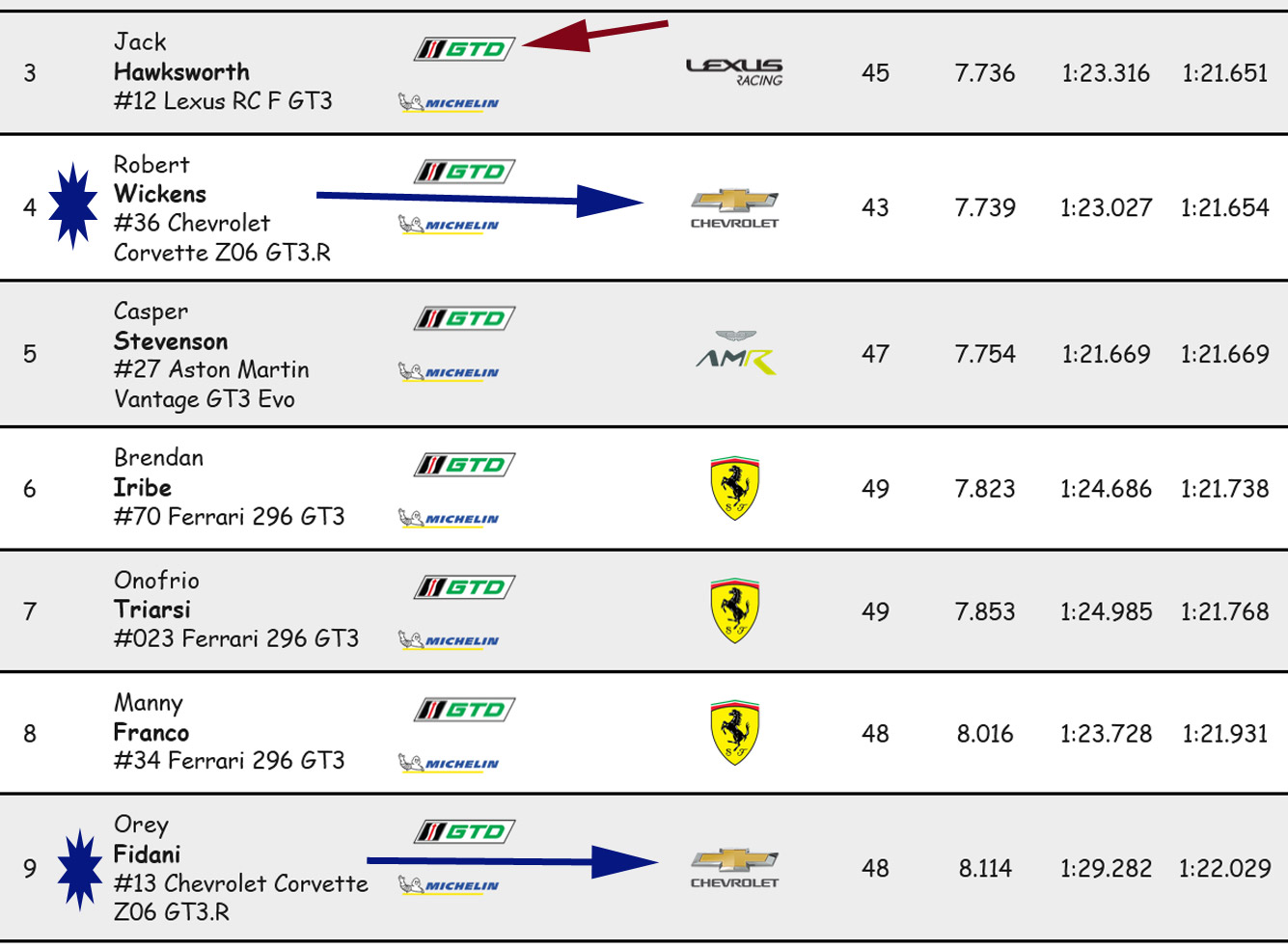 Stevenson ended up third in his No. 27 Aston Martin Vantage GT3 with a 1m20.933s, and then it was Onofrio Triarsi, who qualified an impressive fourth in the No. 023 Triarsi Competizione Ferrari the one that had been rebuilt after its heavy crash at the 12 Hours of Sebring.