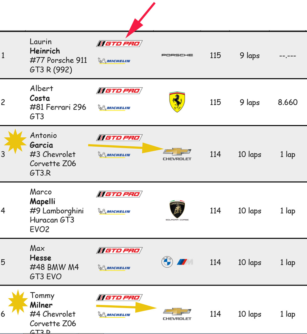 In GTD class both TF sport Corvettes sucked and finished in the back of this class
