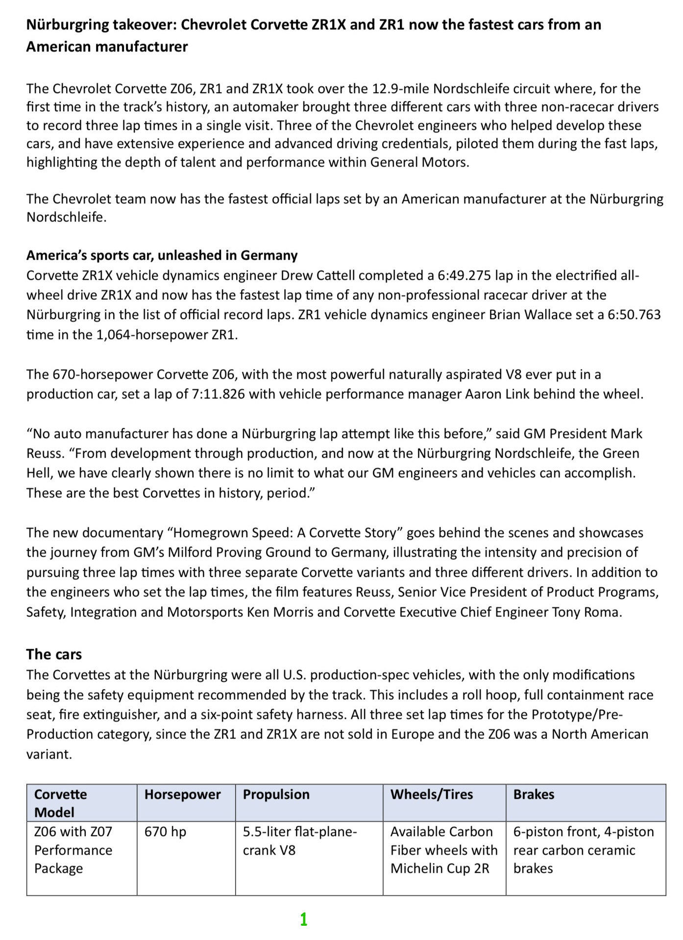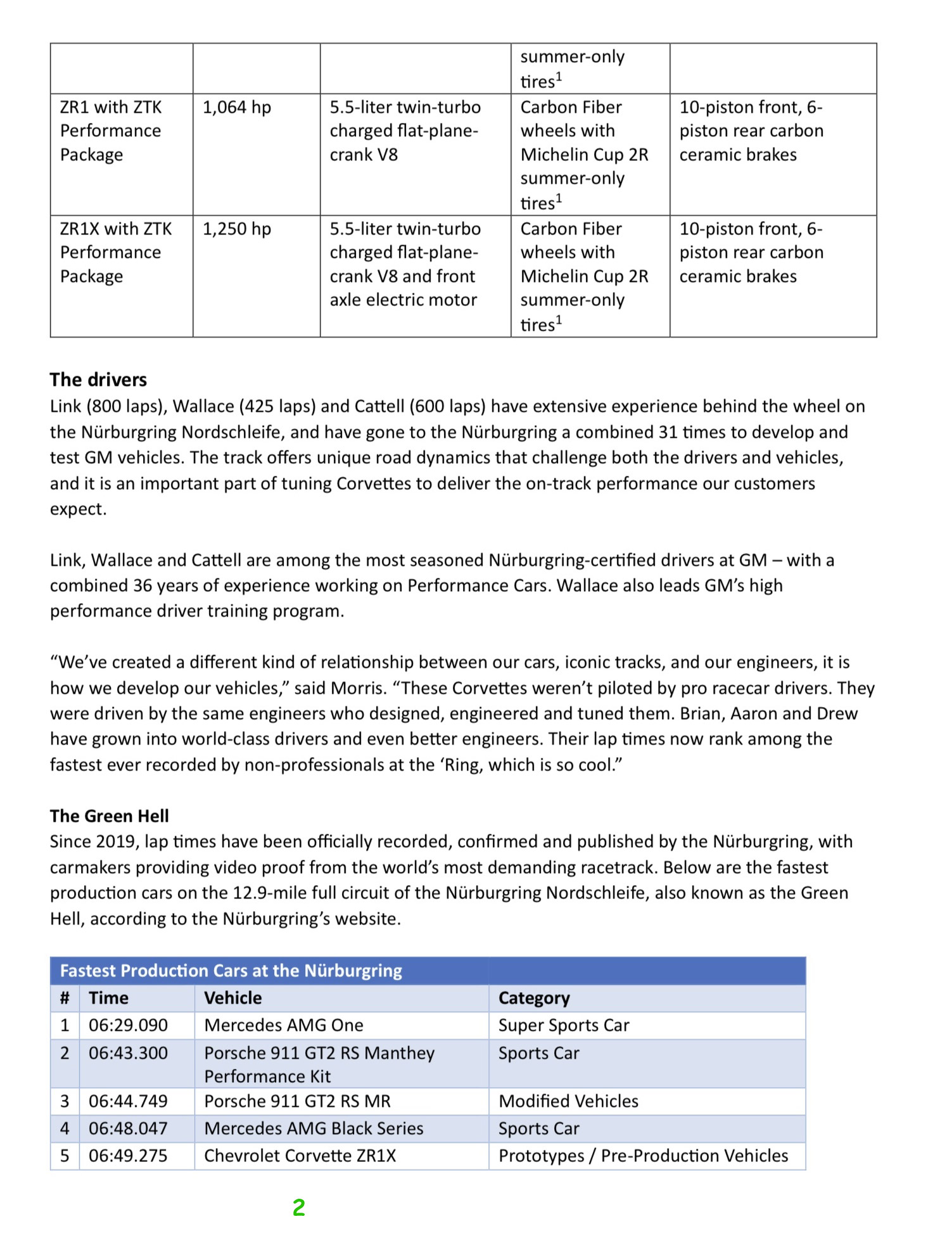 “No auto manufacturer has done a Nürburgring lap attempt like this before,” said GM President Mark Reuss. “From development through production, and now at the Nürburgring Nordschleife, the Green Hell, we have clearly shown there is no limit to what our GM engineers and vehicles can accomplish. These are the best Corvettes in history, period.”