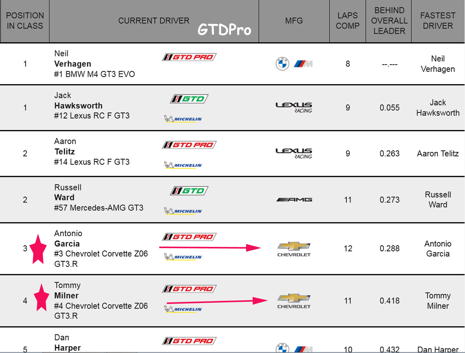 They finished ahead of Nicky Catsburg and Milner, who were just 0.13 seconds behind in the No. 4 Corvette Z06 GT3.R. Both Corvettes were within 0.418 seconds of Neil Verhagen’s pole-winning time.