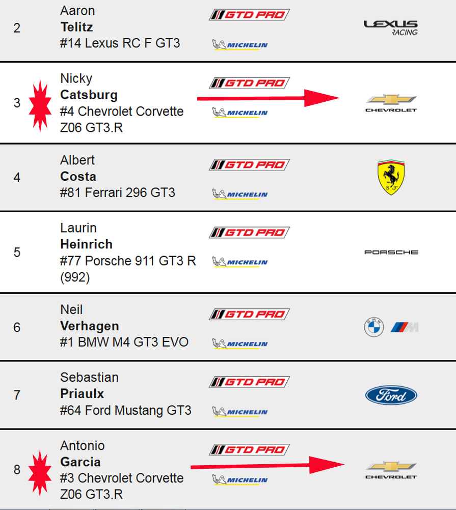 Costa has now fallen to seventh in GTD PRO, while Antonio García is now in fourth place in the No. 3 Corvette.