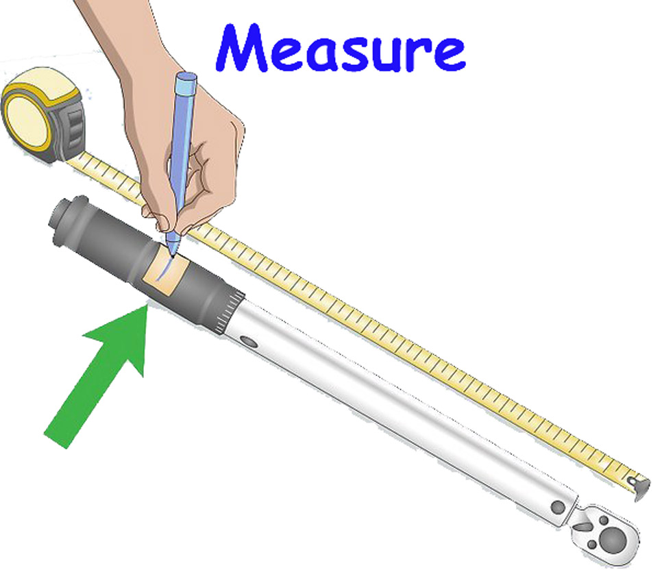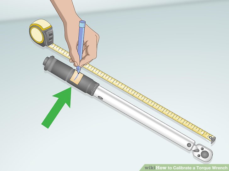 Hand Calibrate Torque Wrench Measure from the square drive to the handle. The square drive is the end of the torque wrench you’d attach a socket to. For the sake of simplicity, use whole inches rather than using any fractions. Mark the point you measured to on the handle and record the distance on a piece of paper for you to come back to later. • Set the paper aside in a safe space until you need it. • Because 24 inches (61 cm) is a common length for most torque wrenches, it will serve as the measurement for further steps. Secure the square drive in the vice.